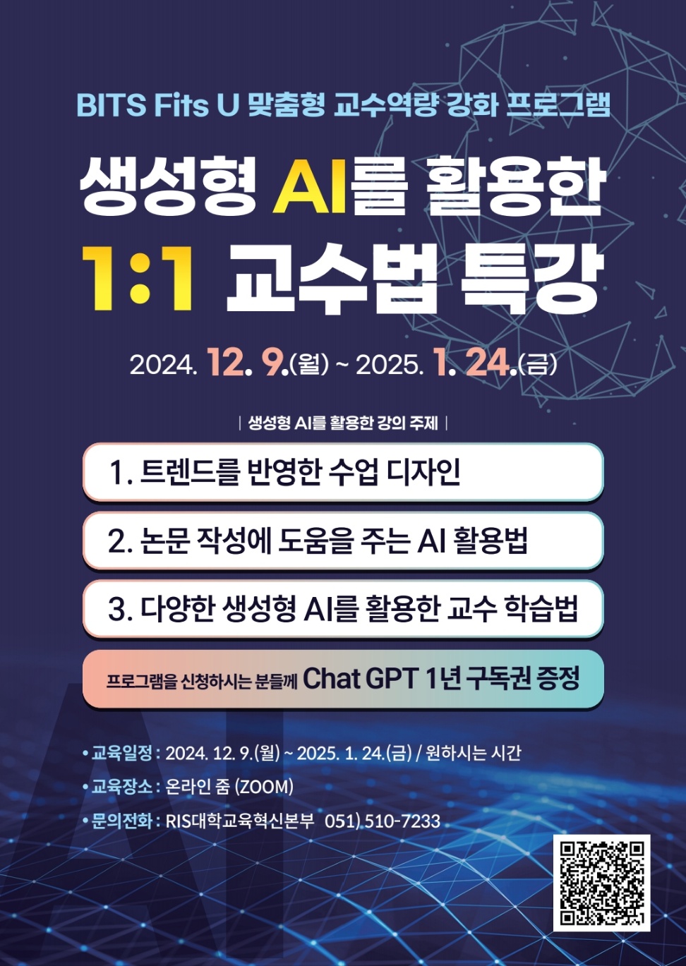 -내용: AI를 활용한 인터랙티브 교수법, 1:1 교수법 컨설팅(ZOOM) 등