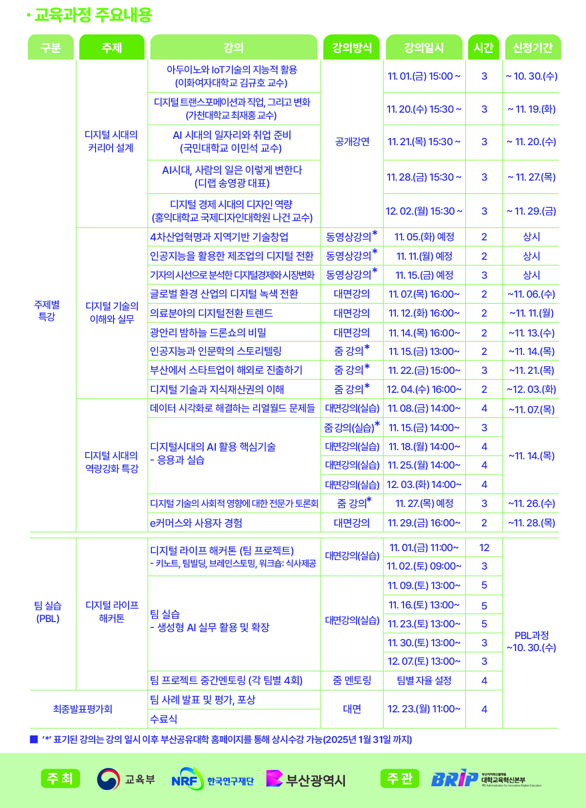 - 동영상 강의 (줌강의 포함) : 비교과프로그램 신청