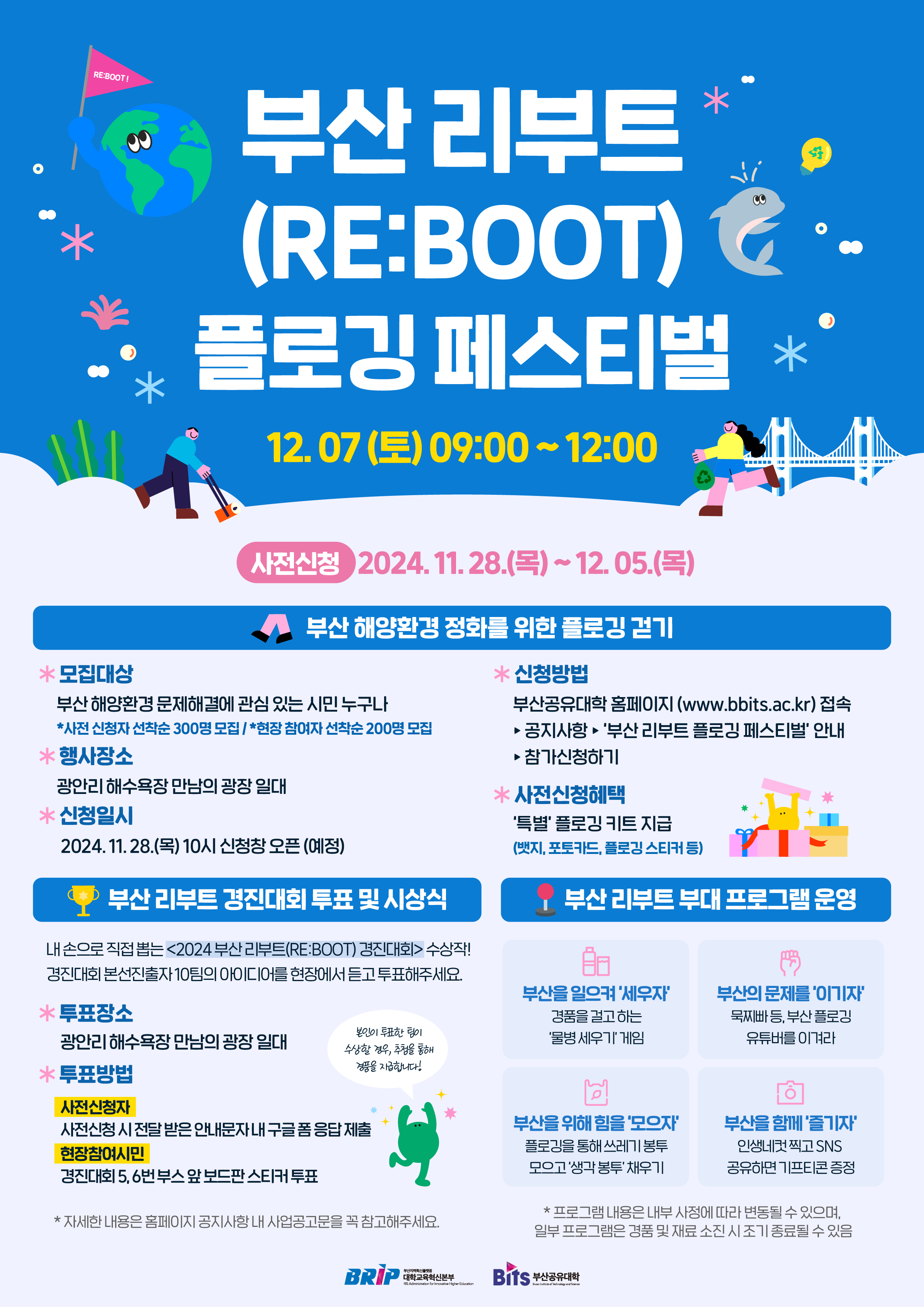 BITS 부산공유대학과 함께 하는 부산 리부트 플로깅 페스티벌이 개최됩니다.