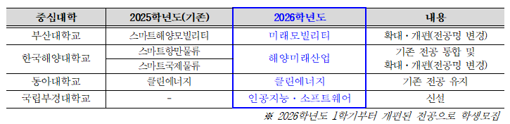 스마트해양모빌리티전공 및 스마트항만물류·스마트국제물류전공은 확대·개편(전공명 변경)됨에 따라,