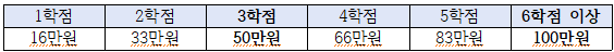 ◦ 지급기준: 3학점 당 50만원, 학기당(계절학기 포함) 100만원 상한