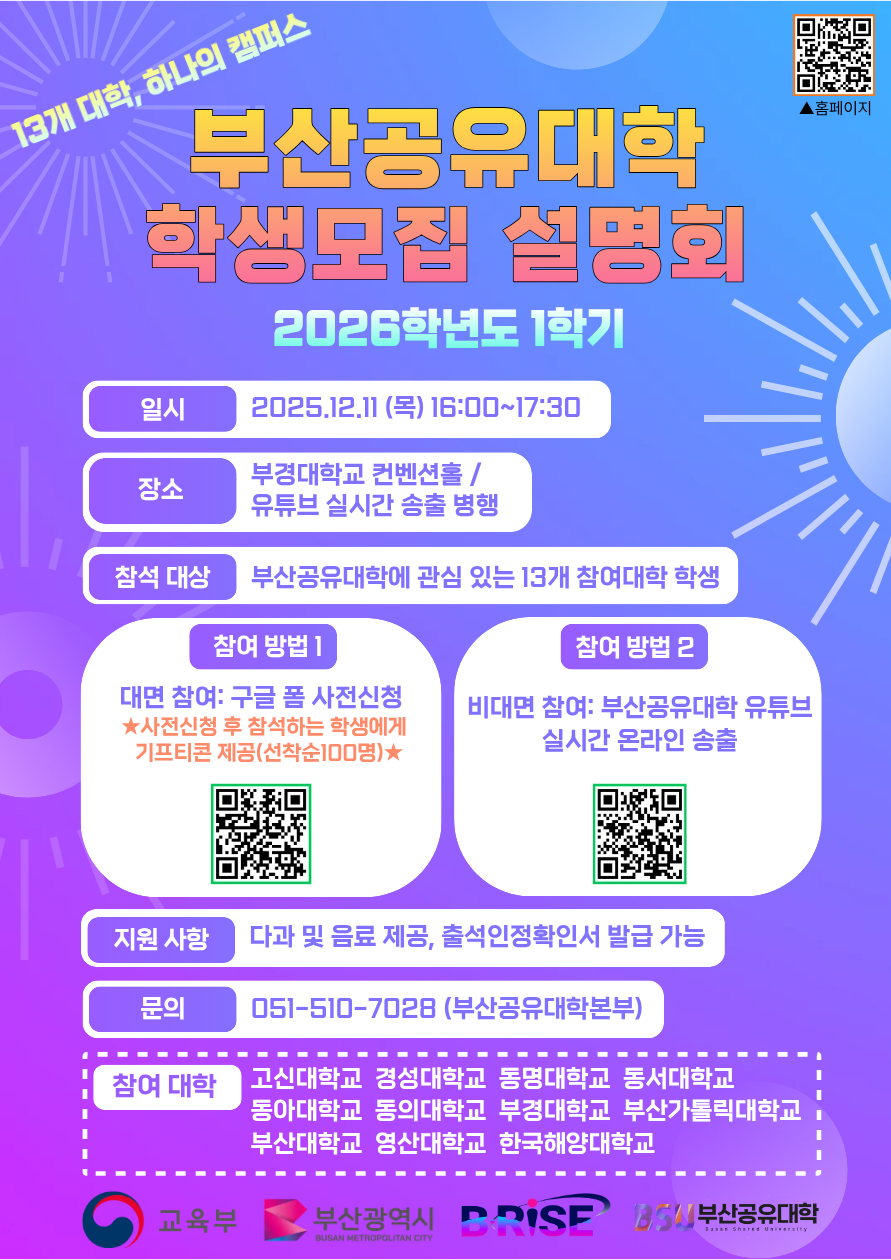 2026학년도 1학기 부산공유대학 학생모집 설명회 개최