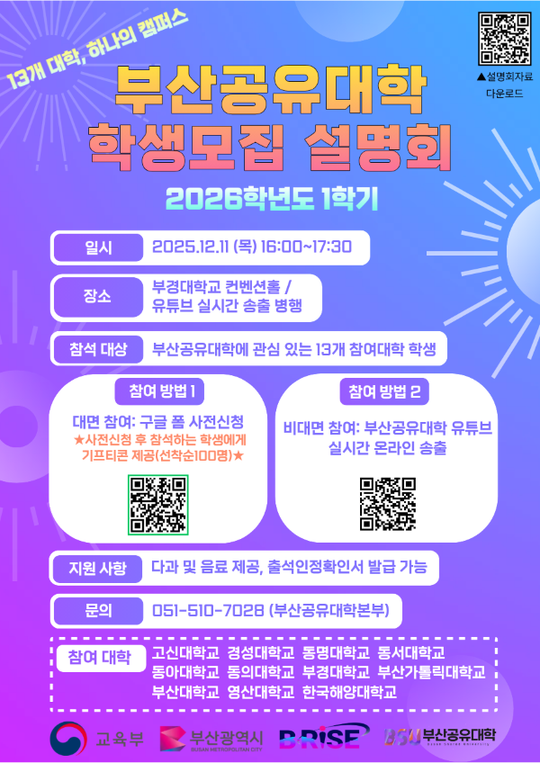 2026학년도 1학기 부산공유대학 학생모집 설명회 개최