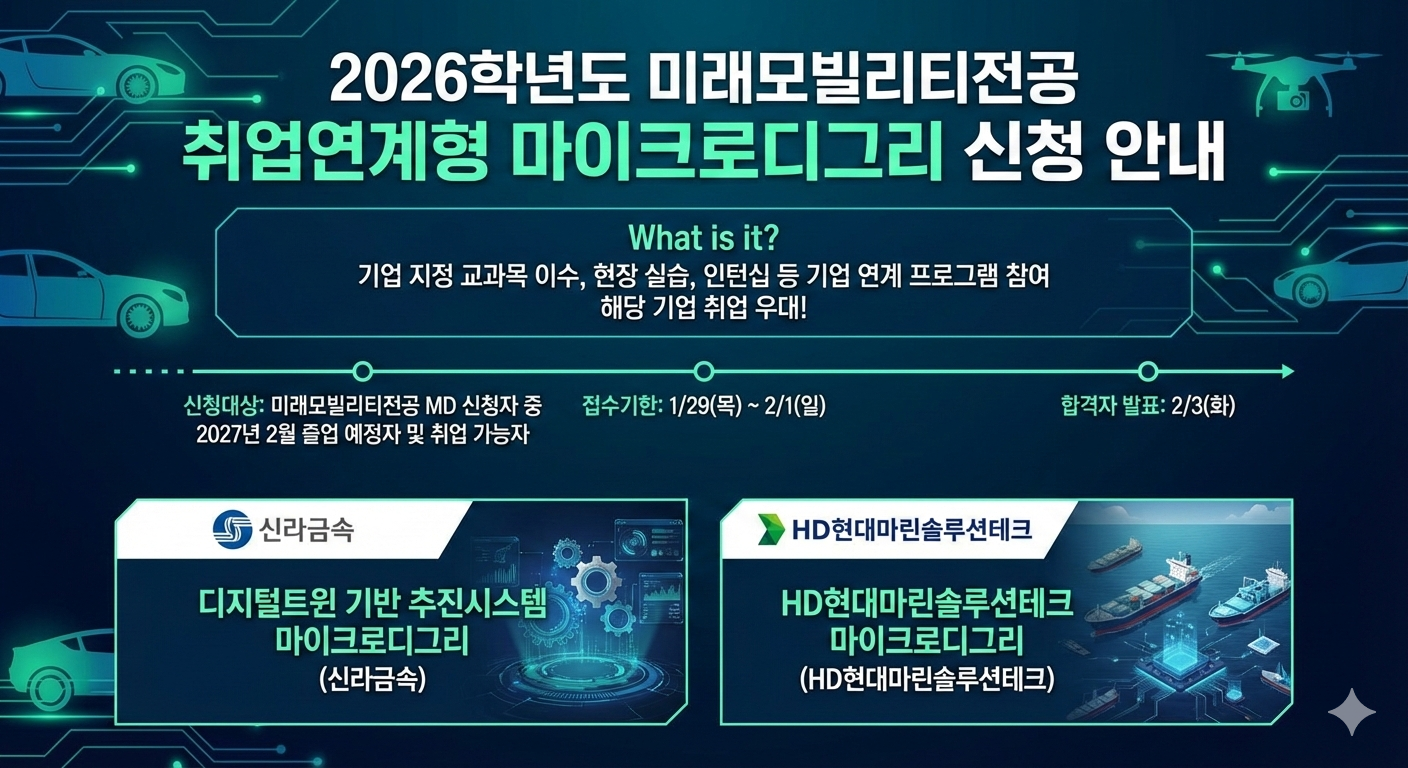 2026학년도 미래모빌리티전공 취업연계형 마이크로디그리 신청 안내(~2/1까지)