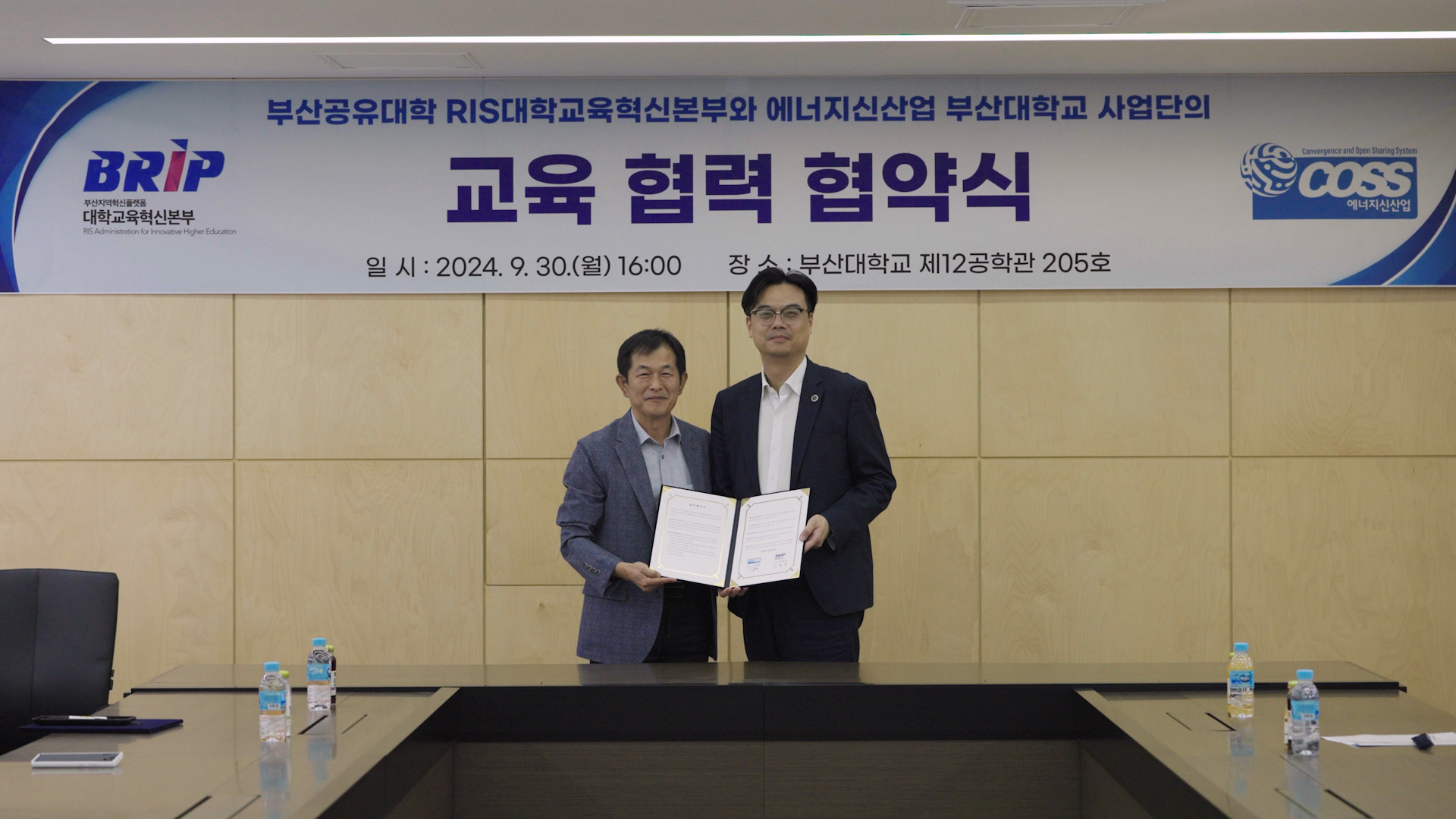 부산공유대학, 에너지신산업사업단 업무협약식 체결(2024. 9. 30.) 작성자운영자 작성일자2024-10-02 09:48:15 조회294 ㅁ 일시 : 2024. 9. 30.(화) 16:00 ~ 16:30ㅁ 장소 : 부산대학교 제12공학관 205호ㅁ 주요내용 : 교양 교과목 관련 학습자료 공동개발 및 상호 활용